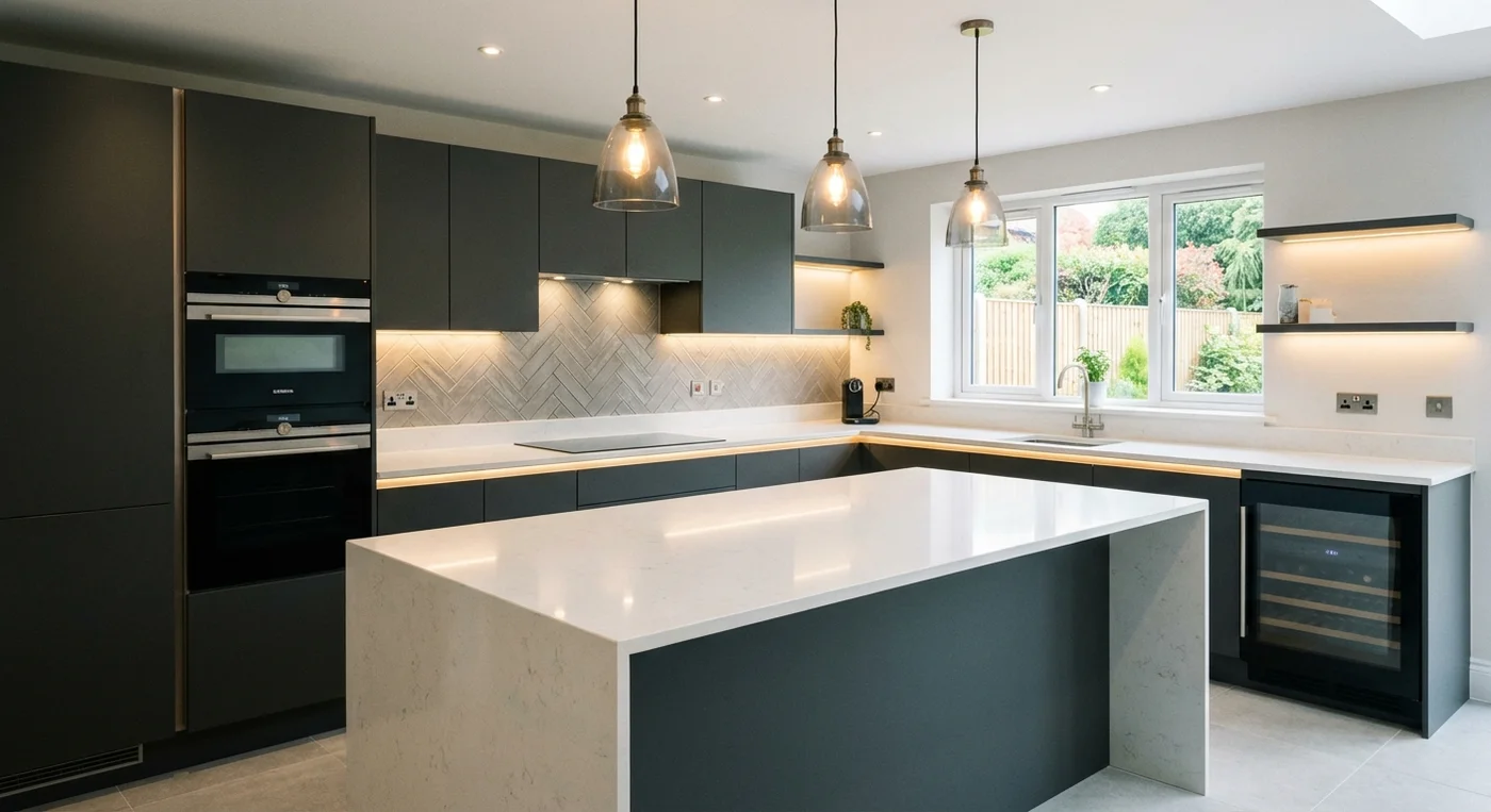 Door and worktop replacements with new handles and splashback